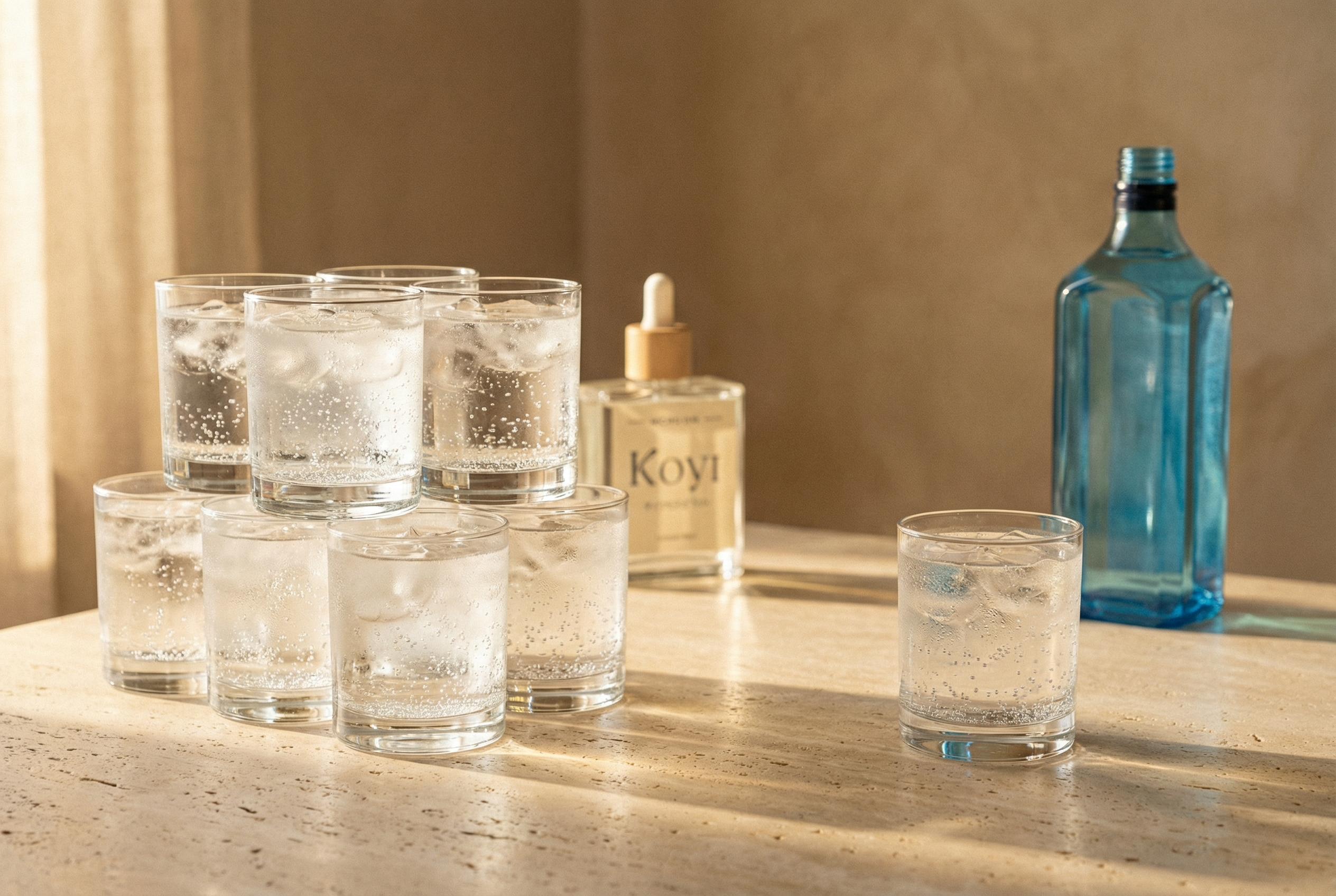 KOYI ist extrem ergiebig. Eine einzige 100 ml-Flasche reicht für über 30 Drinks. Die 30 ml Flasche reicht für etwa 9 Drinks. Das macht KOYI nicht nur smarter, sondern auch deutlich effizienter als herkömmliche Spirituosen.