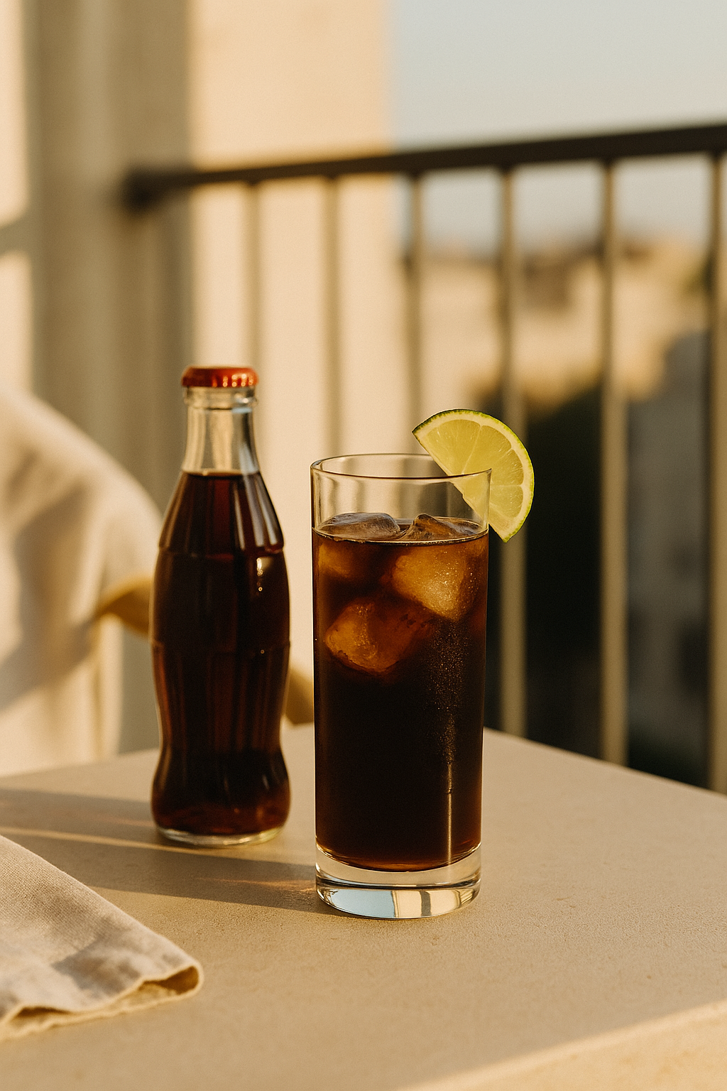 Cola in ein Longdrinkglas geben, Eiswürfel dazu. KOYI Micro Rum direkt auf den Drink pipettieren – nicht rühren, einfach wirken lassen. Limette leicht andrücken und ins Glas geben. Fertig.